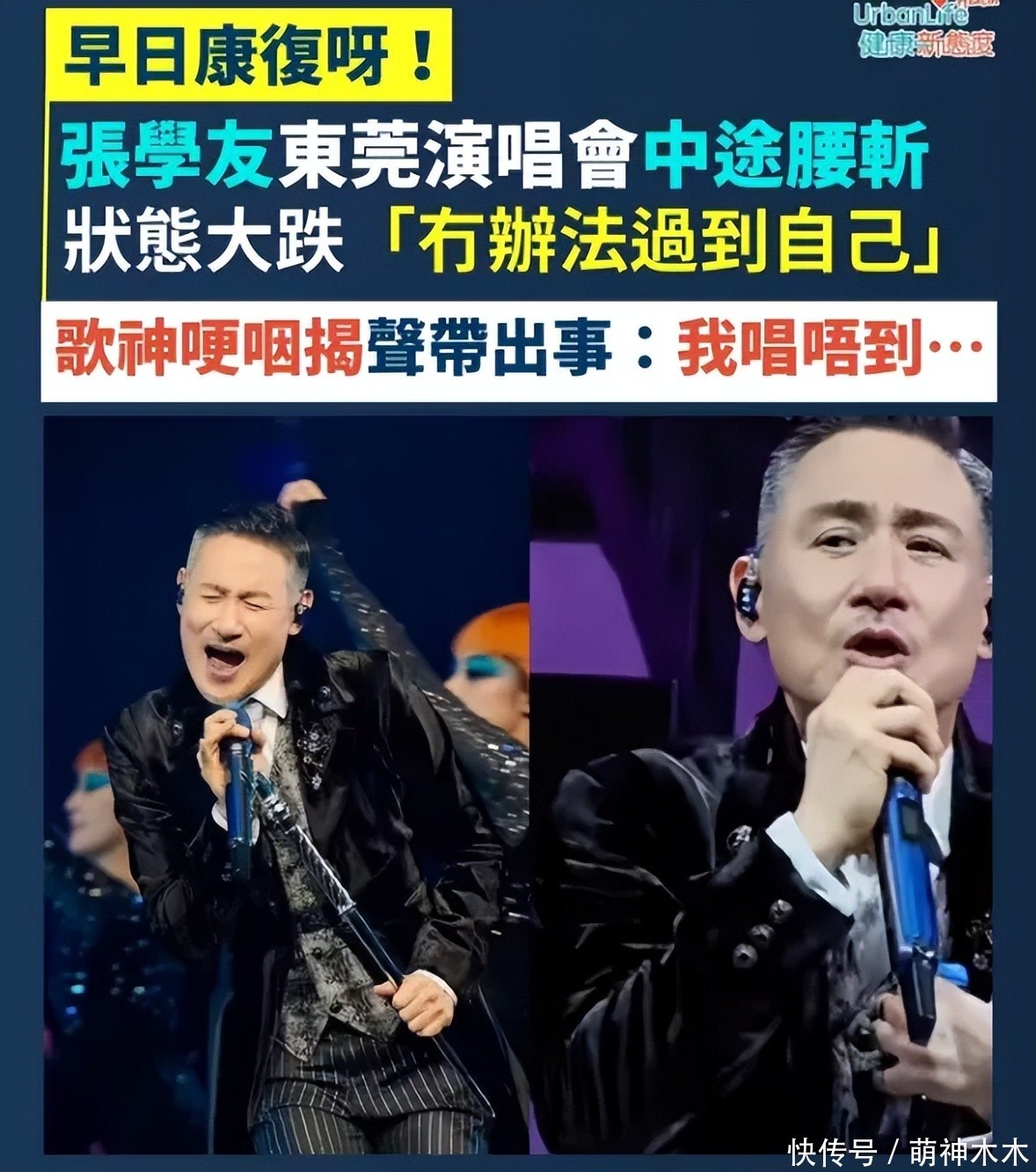2025年东莞站,张学友带病表演,最终出现多个破音,怎么都唱不上去。他当场向歌迷道歉,并直言想中断下半场演出,让歌迷和主办方协商退票。不过,歌神的粉丝都很善解人意,并没有申请退票,而是鼓励他继续演唱。最终,张学友坚持了下来,而且下半场的状态不错。
