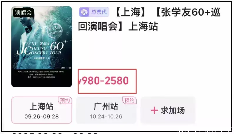 这番解释虽然有理有据,但也侧面证实网友的吐槽是事实。对比了一下,9月26张学友上海站的演唱会,最低价格为980,最高价格为2580。相比之下,下半年在红馆举办的演唱会就优惠得多,从目前透露的资讯看,票价在680~1080之间,上下或许还有浮动,但范围应该不是很大。
