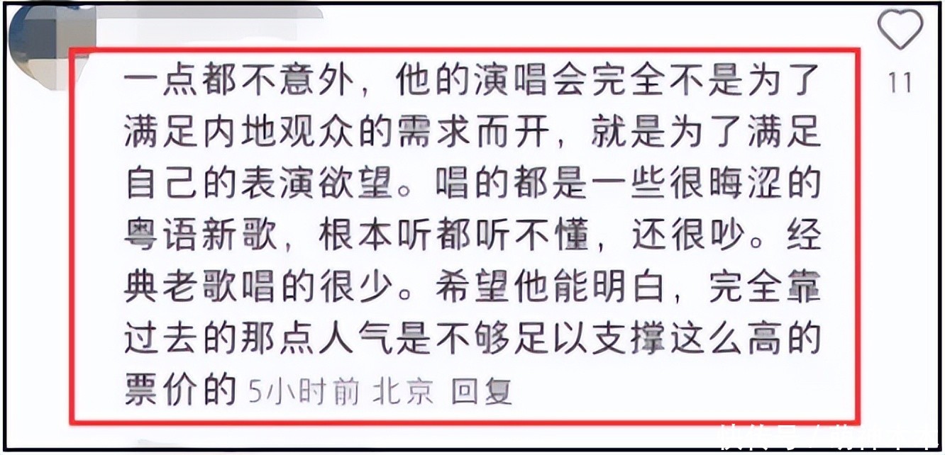 除了吐槽演唱会票价之外,还有去过现场的歌迷认为,张学友如今的演唱会歌单有些让人失望,很多都是后来新出的粤语歌曲,经典的老歌没有几首万宝优配,这不更加证明了他的演唱会,是为粤语区的歌迷准备的。